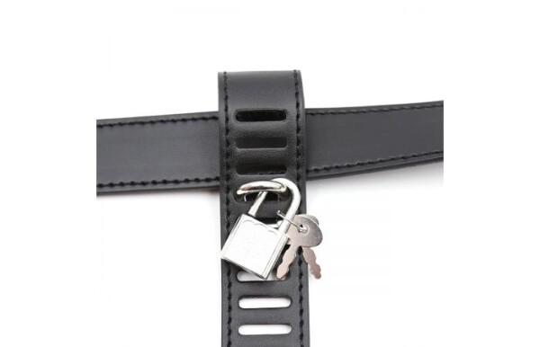 Dit kuisheidsbroekje is gemaakt van soepel, zacht kunstleer en heeft 3 sloten. Door de gaatjes in de banden is het broekje volledig aan te passen voor een comfortabele pasvorm.
