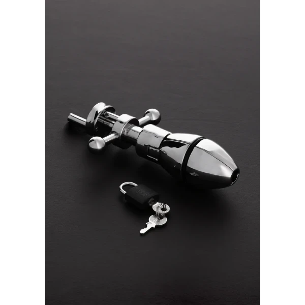 De anal lock geeft een nieuwe demensie aan anaal spel. Bij het inbrengen voelt de drager het staal door de anus glijden. Eenmaal volledig ingebracht, zorgt een simpele druk aan de achterkant van de plug ervoor dat het ingebrachte gedeelte uitzet. De Ultimate AssLock is afsluitbaar met een hangslot voor optimale beveiliging, waardoor hij zowel als anaal kuisheidsgordel als buttplug gebruikt kan worden.