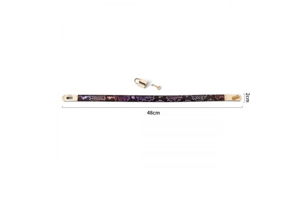 Prachtige smalle halsband gemaakt van kunstleer met een opvallende roze/paarse snake print met goudkleurige metalen accenten en slot. Draag de halsband als (day)collar of dubbelgeslagen om je pols.