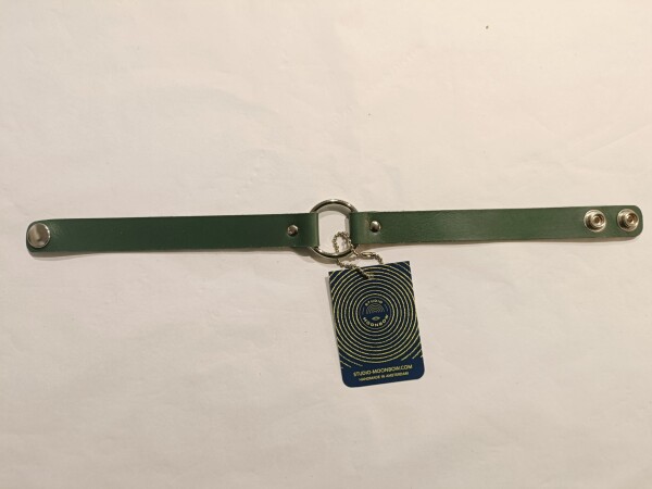 Handgemaakte leren choker van hoogwaardig Italiaans plantaardig gelooid leer. Verstelbaar met drukknopen.