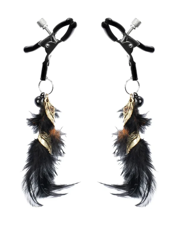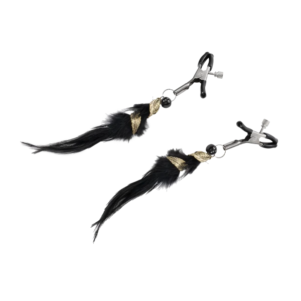 Rimba Bondage Play - Tepelklemmen met Veren - Zwart & Goud