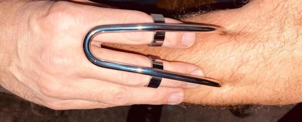 Fantastische RVS kattenklauw met 2 scherpe vingers. Ringmaat 21 mm, dus past (bijna) iedereen! Nagelscherpe klauwen voor een spannend spel!
