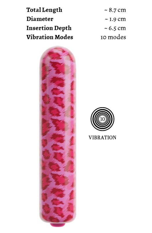Speelse LEO minivibrator van beau cœur in een trendy roze luipaarddesign. Stijlvol, onopvallend en zeer discreet in elke tas of op het nachtkastje. Altijd snel klaar voor intiem spel. Ideaal voor spontane avonturen - alleen of met z'n tweeën! Deze brutale kleine krachtpatser zal je verrassen met 10 veelzijdige, intense vibratiestanden. Eenvoudig en handig met één druk op de knop.