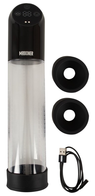 Waterdichte automatische pomp van Mr Boner voor effectieve, leuke penis- en potentietraining. Kan ook gevuld worden met water voor aquatraining in bad en onder de douche. Werkt volledig automatisch en handig met één druk op de knop (LED-verlichting)! Een krachtige motor zorgt voor een enorme zuigkracht in 6 standen met verschillende intervallen en intensiteiten. Een ontgrendelknop zorgt voor veilig gebruik met snelle druknivellering.