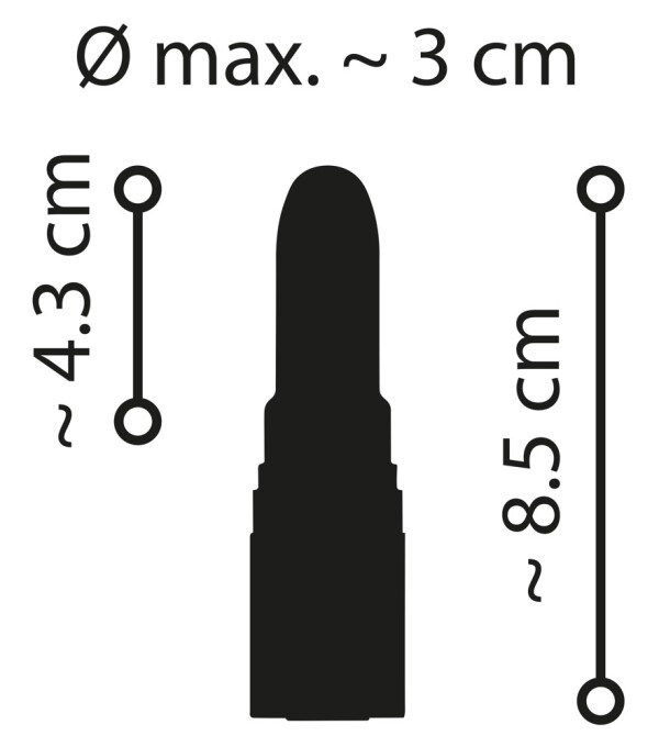 Totale lengte 8,5 cm, insteeklengte 4,3 cm, Ø 3 cm.