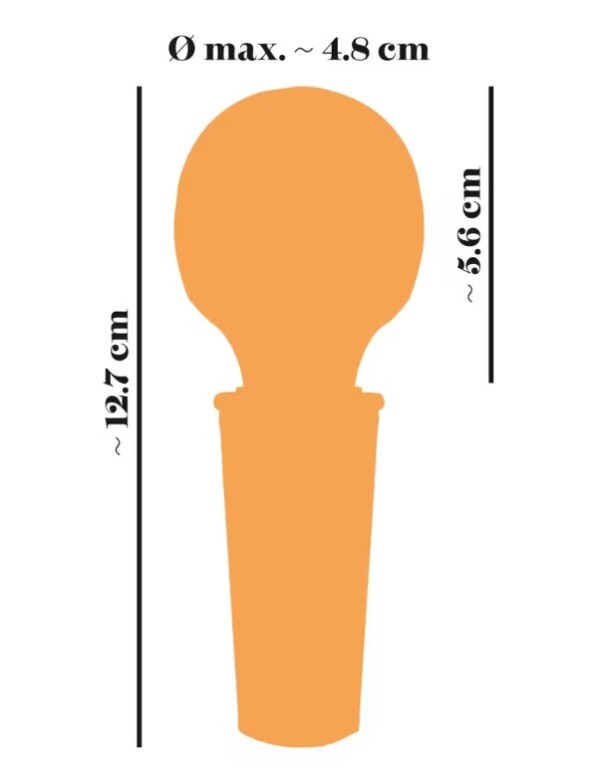 - Totale lengte 12.7 cm, massagekop 5.6 cm lang, Ø max. 4.8 cm.