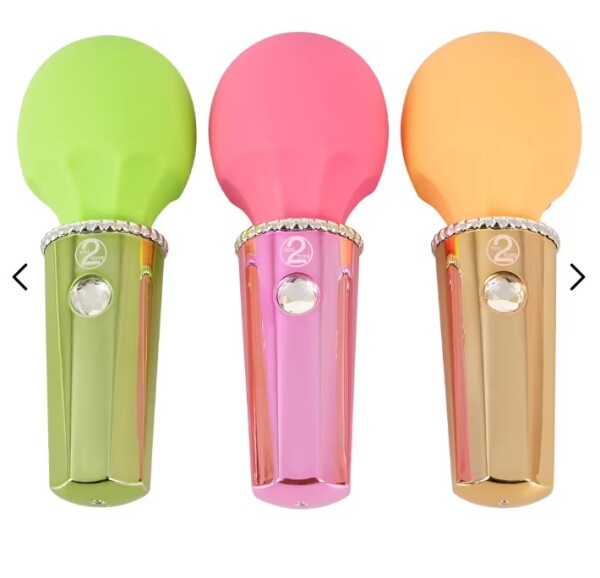 Kleine, handige massagestaaf Mini Wand Sorbet in een fruitige, frisse sorbetkleur en elegante metallic look met een fonkelende glittersteen als bedieningsknop. Met zijn flexibele, zijdezachte massagekop is hij net zo geschikt voor uitgebreide massages als voor precieze stimulatie.