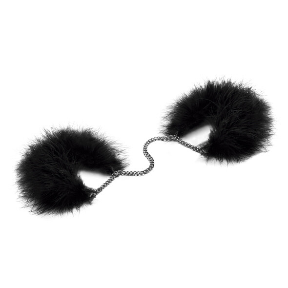 Handboeien van veren. Past altijd dmv zilverkleurige verbindingsketting.