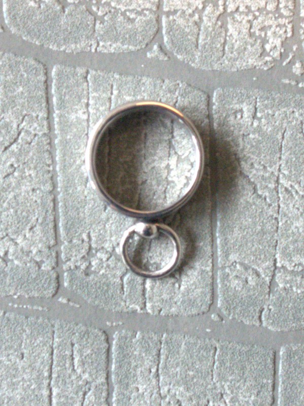 0.5 cm brede RVS ring voor om de vingers of duim met een O-ringetje eraan.