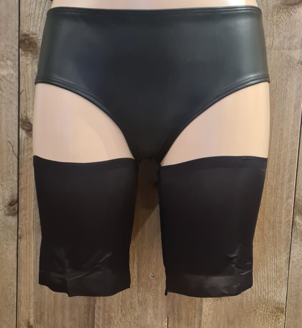 Gladde dijbeen banden tegen het schuren van de dijen. Het materiaal is bijzonder glad en laddert niet. Aan de binnenzijde is een siliconen plakrand bevestigd (boven- en onderaan), zodat ze mooi blijven zitten