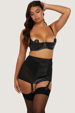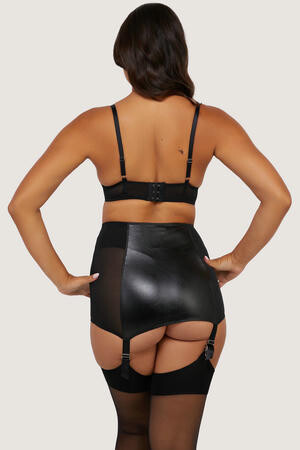 Mooie kwart cup bh in kunstleer, met een transparante achterkant.