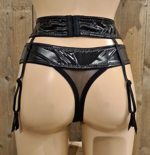 Sexy taille jarretel gordel, gemaakt van hoogglans lak met 4 jarretel clips.