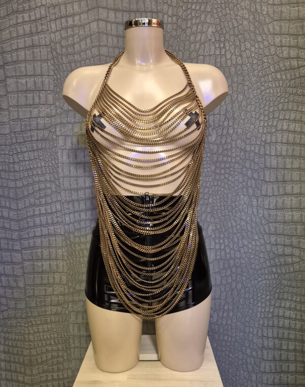 Prachtige top gemaakt van bronskleurige aluminium kettingen in een verleidelijk watervaldesign.