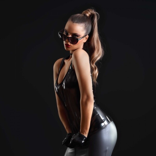 Mooie top, gemaakt van hoogglanzende zwarte lak. Met een diepe halsuitnede aan de voorkant. Zonder rits.