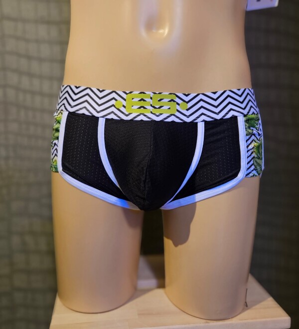 Leuke boxershort in zacht elastisch geperforeerd materiaal. Met zig-zag print op de band en een yucca afbeelding op de heup.