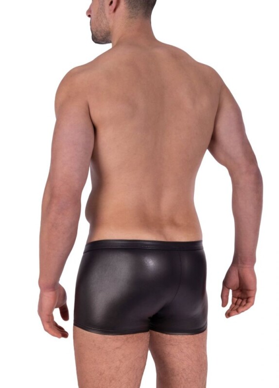 Stoere boxershort gemaakt van elastisch wetlookmateriaal met een leuk metalen detail aan de voorkant.