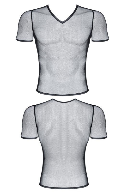 Sexy transparant T-shirt gemaakt van zacht mesh materiaal, met V-hals.