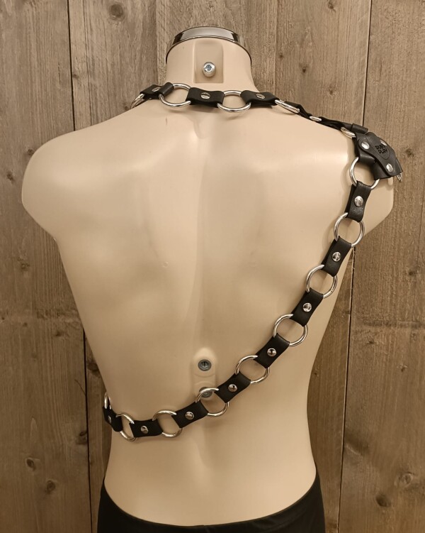 Fantastisch asymmetrisch harnas gemaakt van rubber, te dragen met en zonder armstuk.