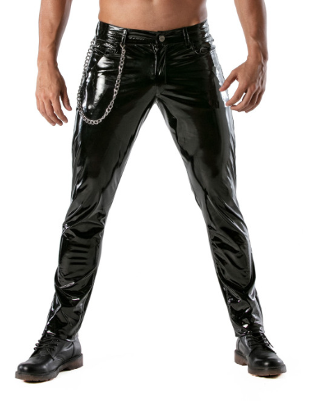 Mooie lange lak broek met rechte pijpen en diepen zakken aan de voorkant.