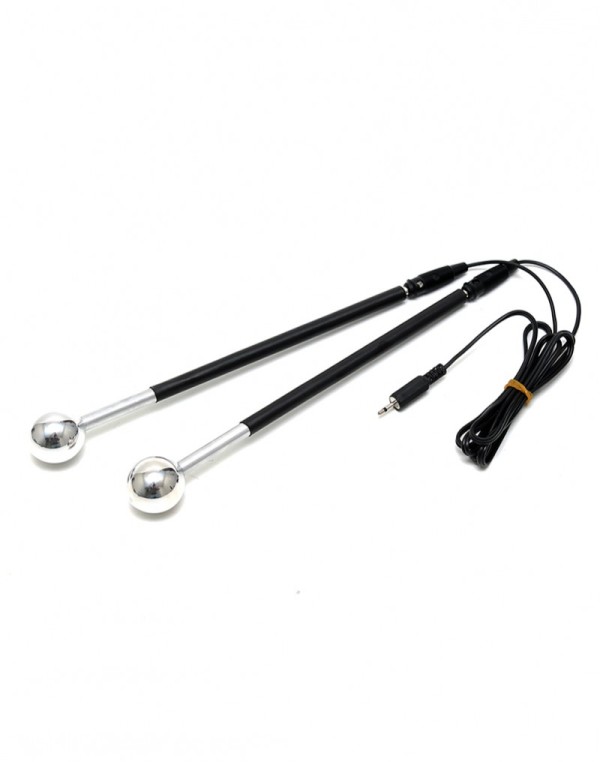Electro sex stimulatie, uni-polaire shocking sticks van elk 23cm lang. Deze sticks hebben een geïsoleerde handgreep zodat alleen contact gemaakt kan worden met de metalen delen. Deze sticks kun je op verschillende manieren gebruiken, zowel in- als uitwendig. Let op dat sticks niet tegen elkaar komen, dat veroorzaakt een kortsluiting. Beide zilveren geleidende delen contact moeten maken met het lichaam om de shocktherapie te laten werken. De stokjes zijn elk uni-polair en worden gelevrd met een kabel met banaan jack pluggen. Gebruik onze contact gel (art.no. 3000) om een optimale geleiding te creëren.