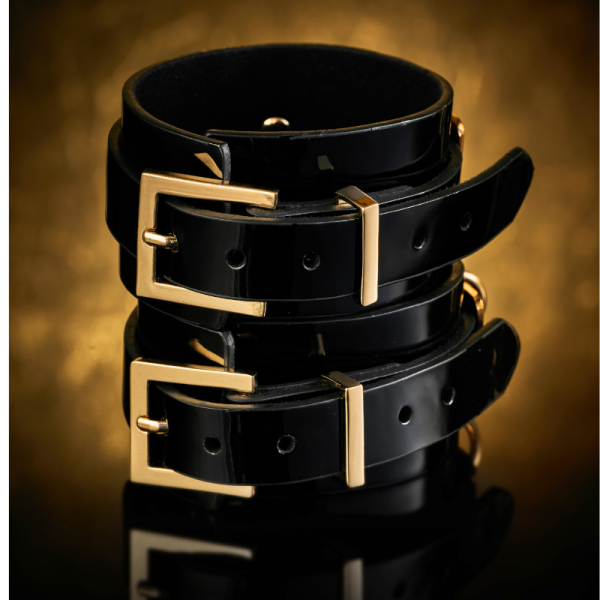 Deze designer polsboeien zijn gemaakt van hoogwaardig High Gloss Vegan Leather. De gouden metalen plaat voegt een unieke, luxe touch toe. Met de meegeleverde clip-ring kunt u de boeien aan elkaar bevestigen. Het dragen van deze prachtige polsboeien vergroot uw zelfvertrouwen.