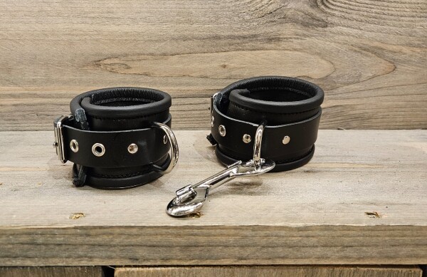 Luxe leren 6 cm brede enkelboeien met een dubbel gevoerde rand, voor extra draagcomfort. Aan iedere boei is een stevige D-ring bevestigd. 1 Musketonhaak wordt meegeleverd.