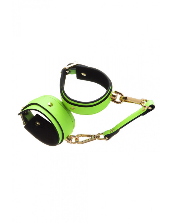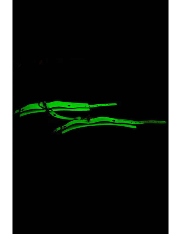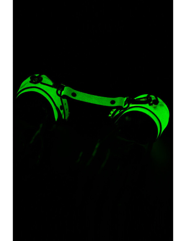 Doe het licht uit en de handboeien kleuren fosforescerend groen.