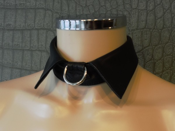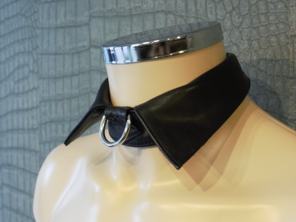 Leren heren kraag met D-ring. Gesp en klittenband-sluiting aan de achterkant. Verkrijgbaar is 2 maten , M/L en XL.