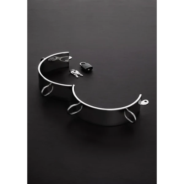 Deze zware Slave Collar is gemaakt van roestvrij staal en heeft een uitstekende kwaliteit. De halsband is voorzien van 4 stalen D-ringen wat je talloze bondage-opties aanbiedt.