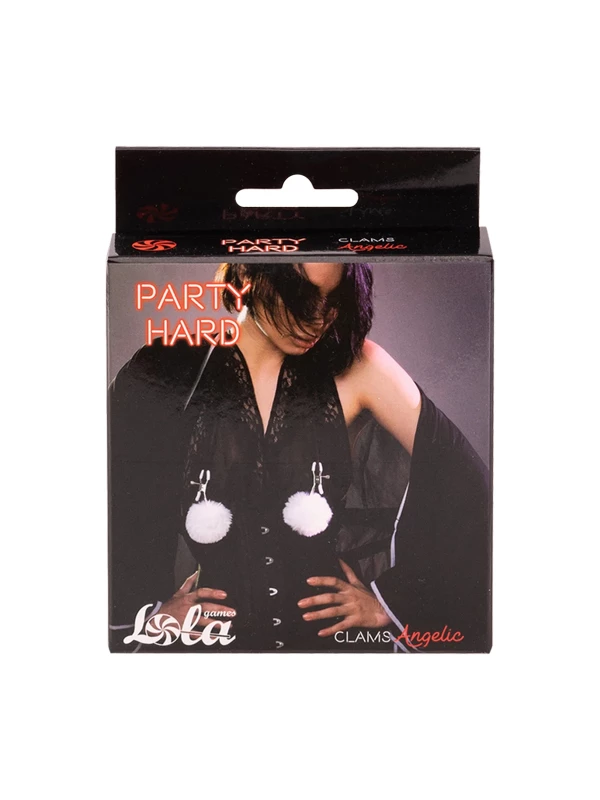 Verstelbare RVS tepelklemmen met zachte witte pompons.