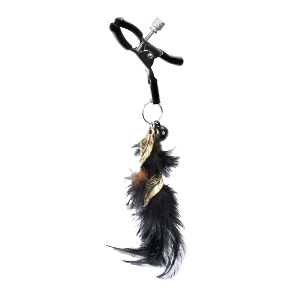 Rimba Bondage Play - Tepelklemmen met Veren - Zwart & Goud