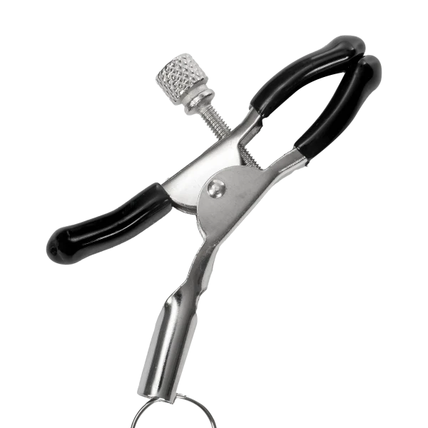 Ontdek stijlvolle verleiding met de Rimba Bondage Play Verstelbare Tepelklemmen.