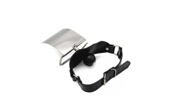 Kunstleren mondknevel met siliconen bal aan de binnenkant en een RVS toiletrolhouder aan de buitenkant. De riem achter het hoofd is verstelbaar middels een gespsluiting. De diameter van de bal is 40 mm. De lengte van de riem is verstelbaar van 45 tot 57 cm.