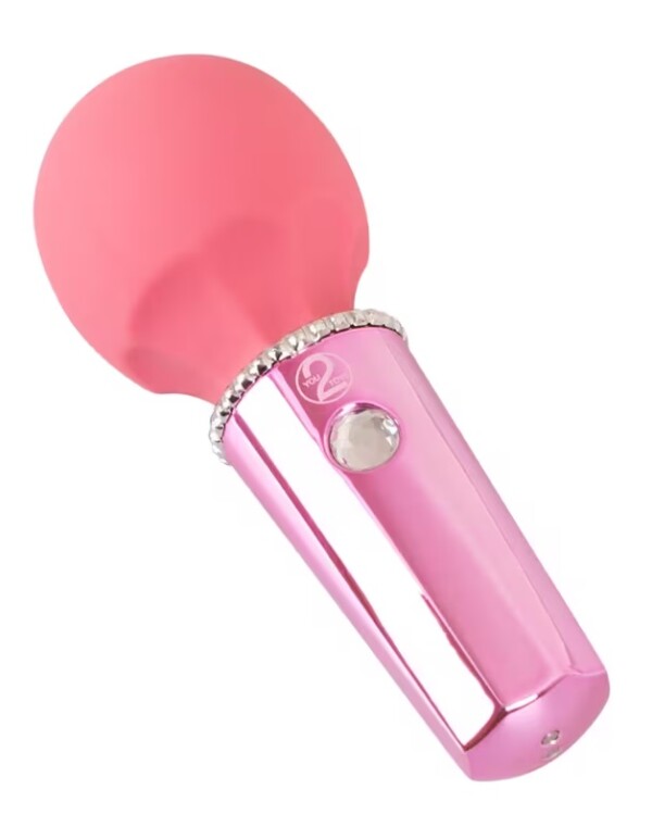 Kleine, handige massagestaaf Mini Wand Sorbet in een fruitige, frisse sorbetkleur en elegante metallic look met een fonkelende glittersteen als bedieningsknop. Met zijn flexibele, zijdezachte massagekop is hij net zo geschikt voor uitgebreide massages als voor precieze stimulatie.