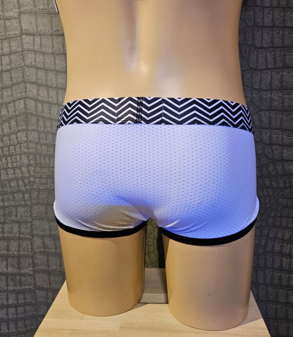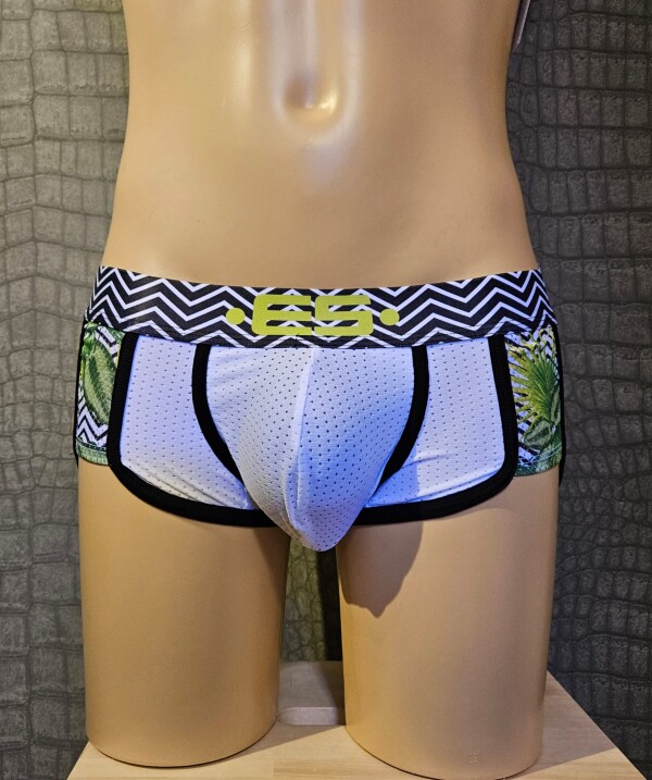 Leuke boxershort in zacht elastisch geperforeerd materiaal. Met zig-zag print op de band en een yucca afbeelding op de heup.