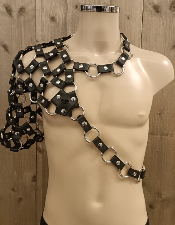 Fantastisch asymmetrisch harnas gemaakt van rubber, te dragen met en zonder armstuk.