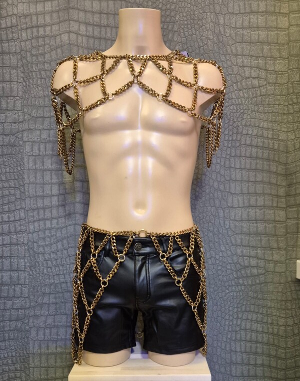 Aluminium rok gemaakt van brons kleurige kettingen.