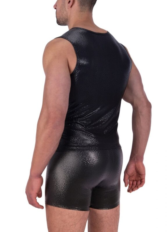 Mouwloze kunstleren top met rits aan de voorkant. Deze mooie top is gemaakt van kunstleer met een subtiele slangenprint.