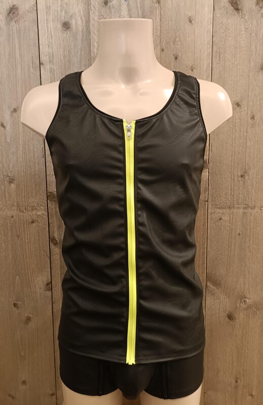Gaaf kunstleren top met neon streep voor en 2 strepen op de rug
